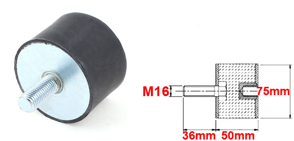 Product Name Rubber Vibration Isolator Mounts Material Metal, Rubber Male Thread Size (Approx.) M16 x 36mm(Dia.* L) Female Thread Size(Approx.) M16 x 14mm(Dia.* L) Rubber Size (Approx.) 75 x 50mm / 3" x 2" (Dia.*H) Overall Height(Approx) 85mm / 3.3" Color Black, Silver Tone Weight 584g Package Content 1pcs x Rubber Vibration Isolator Mounts - Reviews