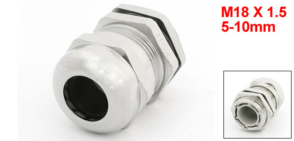Product Name Cable Gland Model M18 Thread Size M18x1.5 Cable Range 5-10mm Thread O.D. 17.9 mm / 0.7" Thread Length 8mm / 0.3" Total Size 30 x 20 mm / 1.2" x 0.78" (L*D) Main Material Stainless Steel Color Silver Tone Weight 25g Package Content 1 x Cable Glands - Reviews