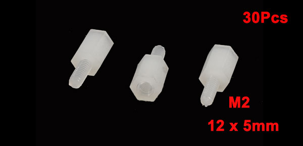 Product Name Threaded Spacer Thread Size M2 Thread Length 6mm / 0.24" Tube Length 6mm / 0.24" Total Size 12 x 5mm / 0.24" x 0.2" (H*D) Material Nylon Color White Net Weight 4g Package Content 30 Pcs x Hexagonal Threaded Spacer - Reviews