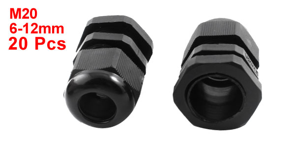 M20 20mm Thread Black Plastic Waterproof 6-12mm Dia Cable Gland 20 Pcs