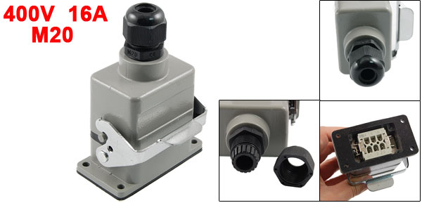 Product Name Connector Contacts Type 6 Pin Screw Connector M20( for 20mm dia thread) Working Voltage 400V Working Current 16A Anti-fire Class V0 ( according to UL 94) Temperatuer Range -40°C to +125°C Main Material Metal, Ceremics Main Color Gray Mounting Size 7 x 3.2cm/ 2.8" x 1 1/4" (L*W) Overall Size 8 x 6 x 11cm/ 3.1" x 2.4" x 4.3"(L*W*H) Weight 293g Package 1 x Connector - Reviews