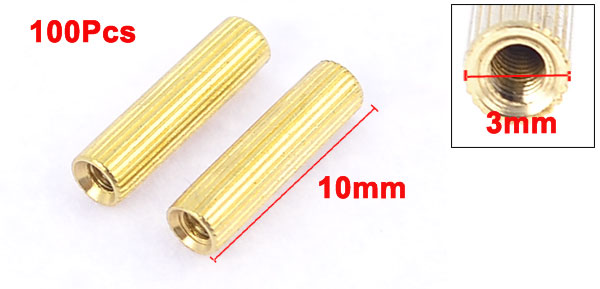 Product Name Brass Standoff Spacer Thread Size M2 Female Total Size(Approx.) 10 x 3mm/ 0.39" x 0.12" (L*Max.D) Material Brass Color Gold Tone Net Weight 40g Package Content 100(±2%) x Brass Standoff Spacer - Reviews