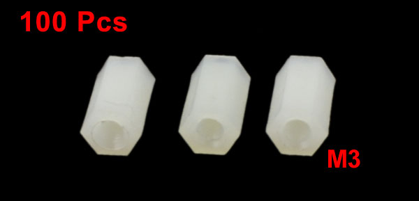 M3 Female Thread Nylon Hexagonal Stand-Off Spacer PCB Pillar Nut 10mm 100Pcs