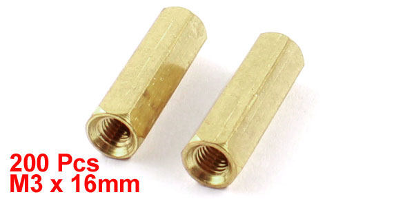 M3 x 16mm Female Thread Brass Pillar Standoff Hexagonal Nut Spacer 200Pcs