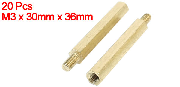 M3 x 30mm x 36mm Male Female Thread Brass PCB Hexagon Standoff Spacer 20Pcs