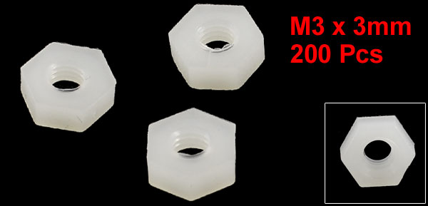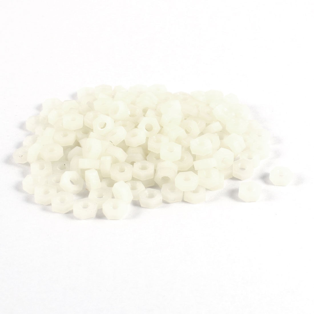DetailsM3 x 3mm Machine Boards Hexagonal Threaded Spacer Repair Parts 200 Pcs  Product Name Hexagonal Threaded Spacer Thread Size M3 Total Size 3 x 6mm / 0.12" x 0.24" (H*D) Material Nylon Color White Net Weight 14g Package Content 200 Pcs (±2%) x Hexagonal Threaded Spacer