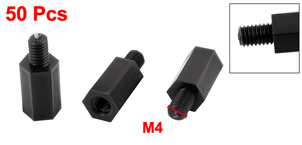 Product Name Hexagon Standoff Spacer Thread Size M4 Male Thread Length 6mm/0.24" Hex Part Length 12mm/0.47" Total Size 18 x 7mm/0.7" x 0.28"(L*W) Material Nylon Color Black Net Weight 61g Package Content 50(+/-2%) x Hexagon Standoff Spacers - Reviews