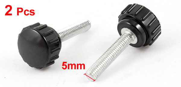 M5 x 25mm Male Thread Round Head Black Knurled Grip Knob 2 Pcs