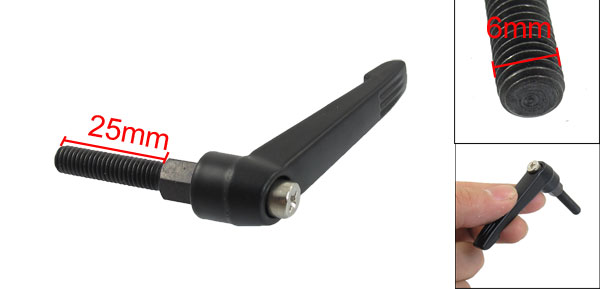 Product Name Adjustable Handle Material Metal Color Black Thread Diameter 6mm/ 0.24" Thread Length 25mm/ 1" Lever Length 50mm/ 2" Overall Size 55 x 50mm/ 2.2" x 2"(L*H) Net Weight 27g Package Content 1 x Adjustable Handles - Reviews