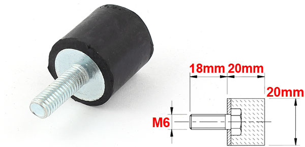 Product Name Rubber Vibration Isolator Mounts Material Metal, Rubber Male Thread Size (Approx.) M6 x 18mm(Dia.* L) Rubber Size (Approx.) 20 x 20mm / 0.8" x 0.8" (Dia.*H) Color Black, Silver Tone Weight 13g Package Content 1pcs x Rubber Vibration Isolator Mounts - Reviews