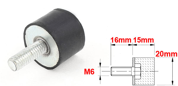 Product Name Rubber Vibration Isolator Mounts Material Metal, Rubber Male Thread Size (Approx.) M6 x 16mm(Dia.* L) Rubber Size (Approx.) 20 x 15mm / 0.8" x 0.6" (Dia.*H) Overall Height(Approx) 30mm / 1.2" Color Black, Silver Tone Weight 14g Package Content 1pcs x Rubber Vibration Isolator Mounts - Reviews