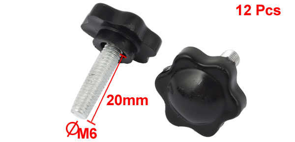M6 x 20mm Male Thread 25 mm Star Head Dia Screw On Type Clamping Knob 12Pcs