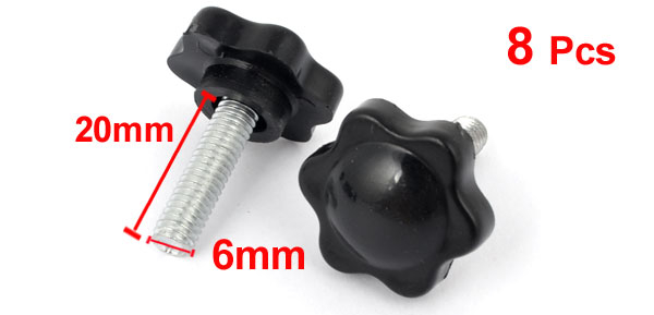Product Name Clamping Screw Knob Type Screw On Head Diameter 25mm/ 1" Thread Length 20mm/ 0.79“ Thread Diameter 6mm / 0.24" Total Height 32mm/ 1.3" Material Metal, Plastic Color Silver Tone, Black Weight 66g Package Content 8 x Clamping Screw Knob - Reviews