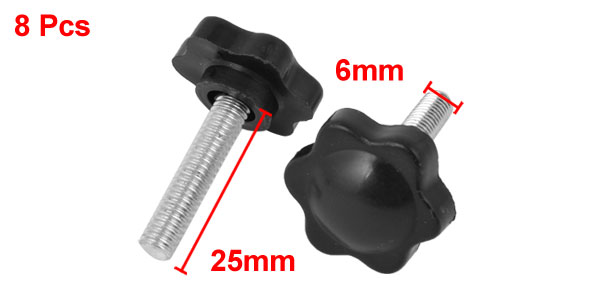 M6 x 25mm Male Thread 25mm Star Head Dia Screw On Type Clamping Knob 8Pcs