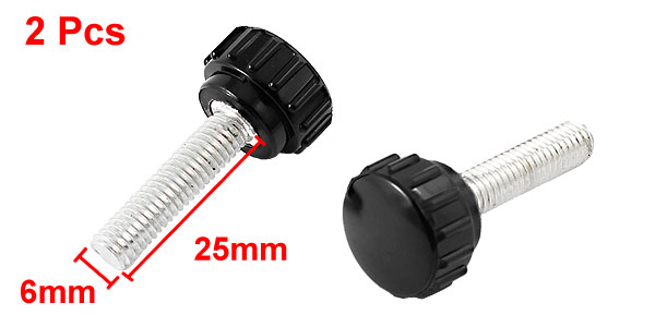 M6 x 25mm Male Thread Round Head Black Knurled Grip Knob 2 Pcs