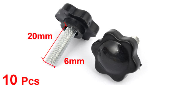 M6x20mm Male Thread 25mm Star Head Dia Screw On Type Clamping Knob 10Pcs