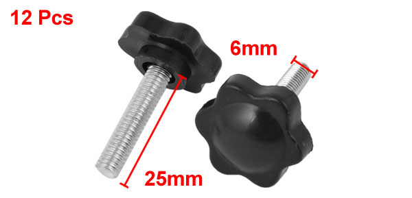 M6x25mm Male Thread 25mm Star Head Dia Screw On Type Clamping Knob 12 Pcs