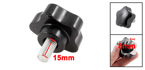 M8 x 15mm Male Thread 36mm Star Head Clamping Knob Black