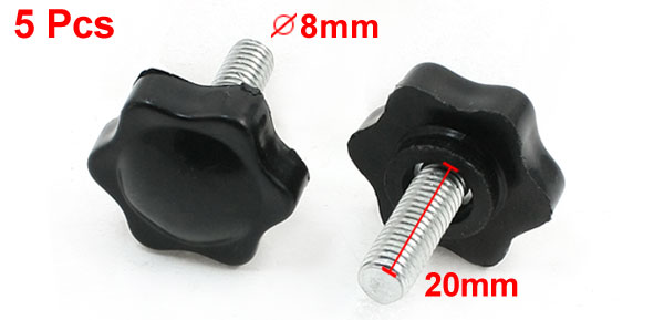 Product Name Clamping Knob Type Screw On Head Diameter 32mm / 1.3" Thread Length 20mm / 0.8“ Thread Diameter 8mm / 0.31" Total Height 35mm / 1.4" Material Metal, Plastic Color Silver Tone, Black Weight 81g Package Content 5 x Clamping Knob - Reviews
