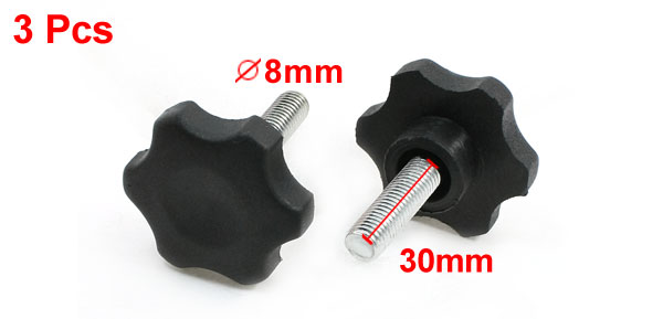 M8 x 30mm Thread 40mm Diameter Antislip Star Shaped Head Clamping Knob 3Pcs