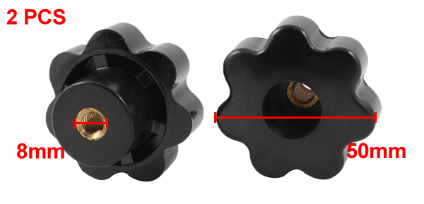 M8 x 50mm Diameter Thread Black Plastic Star Head Clamping Knob Grip 2pcs