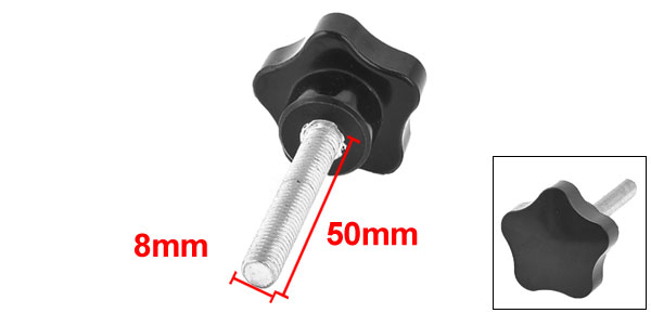 Product Name Star Clamping Knob Type Screw On Head Diameter 40mm / 1.6" Thread Length 50mm / 2" Male Thread Diameter 8mm / 0.3" Total Height 74mm / 2.9" Material Metal & Plastic Color Silver Tone & Black Weight 43g Package Content 1 x Star Clamping Knob - Reviews