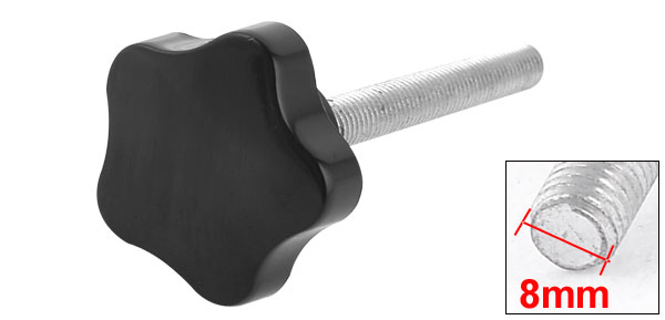 Product Name Star Clamping Knob Type Screw On Head Diameter 40mm / 1.8" Thread Length 70mm / 2.8" Male Thread Diameter 8mm / 0.3" Total Height 92mm / 3.6" Material Metal & Plastic Color Silver Tone & Black Weight 46g Package Content 1 x Star Clamping Knob - Reviews