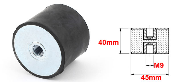 Product Name Rubber Vibration Mount Female Thread Size M9 x 12mm(Dia.*L) Rubber Size 50 x 40mm /2" x 1.6" (Dia.*H) Material Metal, Rubber Color Black, Silver Tone Weight 184g Package Content 1 x Rubber Vibration Mount - Reviews