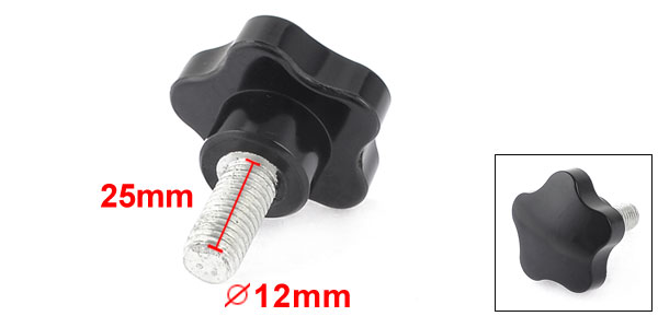 Machine 55mm Height 12mm Diameter Thread Star Clamping Knob Grip Black