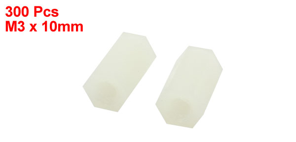 Product Name Hexagonal Threaded Spacer Thread Size M3 Total Size 10 x 6mm / 0.4" x 0.24" (H*D) Material Nylon Color White Net Weight 68g Package Content 300Pcs(± 2%) x Hexagonal Threaded Spacer - Reviews