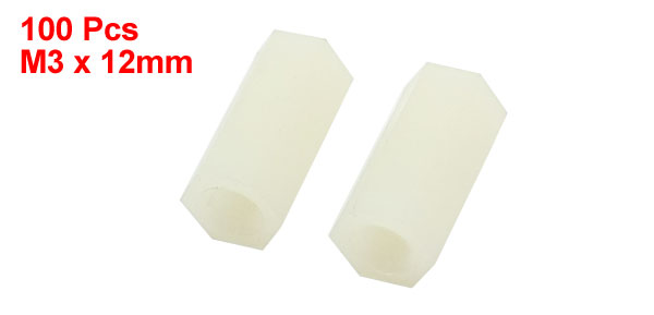 Product Name Hexagonal Threaded Spacer Thread Size M3 Total Size 12 x 6mm / 0.5" x 0.24" (H*D) Material Nylon Color White Net Weight 28g Package Content 100Pcs(± 2%) x Hexagonal Threaded Spacer - Reviews