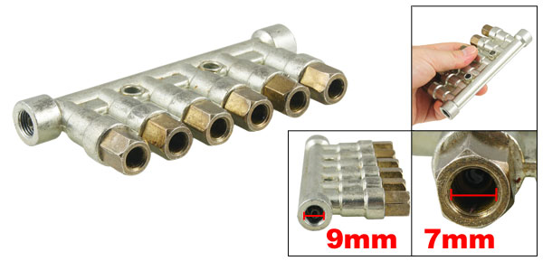 Product Name Oil Distributor Type 6 Way Material Aluminium Color Silver Tone Main Adapter Hole DIa. 9mm/0.35" Branch Adapter Inside DIa. 7mm/0.27" Hole Diameter 6mm/0.24" Hole Distance 35mm/1.37" (Center to Center) Dimension 11.5 x 5.5 x 1.5cm/4.5" x 2.1" x 0.6"(L*W*H) Net Weight 264g Package Content 1 x 8 Way Oil Distributor - Reviews