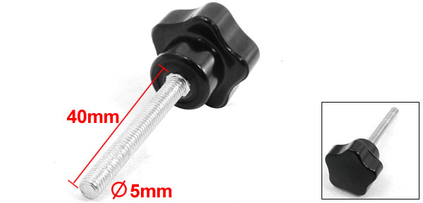 Product Name Star Knob Type Screw On Head Diameter 25mm / 0.98" Thread Length 40mm / 1.57" Male Thread Diameter 5mm / 0.19" Total Height 59mm / 2.3" Material Metal ,Plastic Color Silver Tone ,Black Weight 14g Package Content 1 x Star Knob - Reviews
