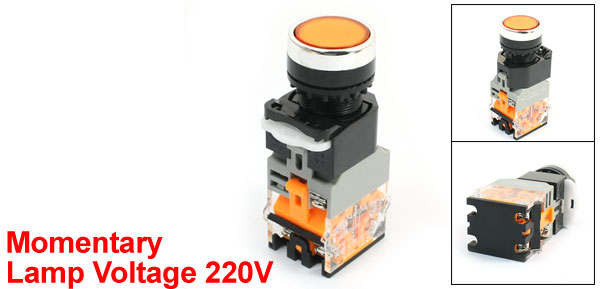 Lamp Voltage 220V Terminal Quantity 6 Light Color Orange Panel Cutout Diameter 21mm / 0.8" Fit Panel Max. Thickness 7mm / 0.3" Button Diameter 2.5cm / 1" Total Size(Approx) 8.4 x 3.5 x 3cm/3.3" x 1.4" x 1.2"(L*W*T) External Material Plastic, Metal, Electric Parts Main Color Black, Clear Net Weight 60g Package Content 1 x Push Button Switch - Reviews