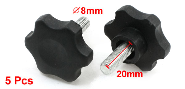 Machine Tool Clamping Knob Replacement 8 x 20mm Thread 40mm Dia Handle 5 Pcs