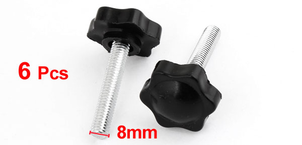 Product Name Clamping Knob Type Screw On Head Diameter 32mm / 1.3" Thread Length 40mm / 1.6“ Thread Diameter 8mm / 0.31" Total Height 55mm / 2.2" Material Metal, Plastic Color Silver Tone, Black Weight 130g Package Content 6 x Clamping Knob - Reviews