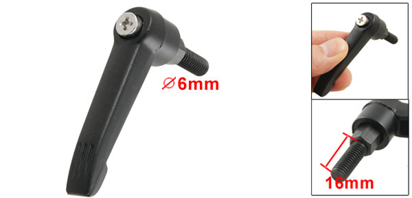 Product Name Adjustable Handle Material Metal Color Black Thread Diameter 6mm/ 0.24" Thread Length 16mm/ 0.63" Lever Length 55mm/ 2.16" Weight 30g Package Content 1 x Machinery Adjustable Handle - Reviews