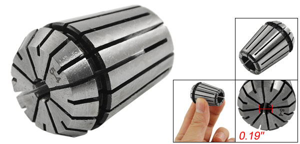 Product Name Spring Collet Model No. ER25-5 Clamping Range 5-4mm/0.19"-0.15" Clamping Diameter 5mm/0.19" Overall Size 25 x 35mm/0.98" x 1.37"(Dia*Length) Material Stainless Steel Color Silver Tone Net Weight 64g Package Content 1 x Spring Collet Chuck - Reviews
