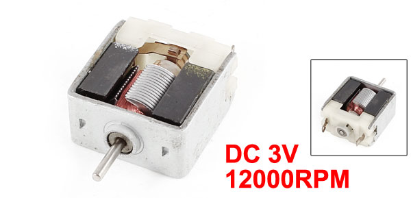 Product Name Mini DC Motor Model 020 Voltage DC 3V Speed 12000RPM Size 19x18x9mm / 0.74" x 0.7" x 0.35"(L*W*H) Shaft Dia 1.5mm / 0.06" Color Silver Tone, Black Weight 11g Package Content 1 x Mini DC Motor - Reviews