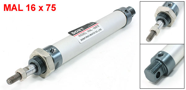 Product Name Air Cylinder Model MAL 16 x 75 Working Fluid Air Bore 16mm/ 0.63'' Stroke 75mm/ 2.95'' Rod Diameter 20mm/ 0.8'' Piston Rod Diameter 15mm/ 0.6'' Screw Hole Diameter 4mm/ 0.16" Threaded End Diameter 5mm/ 0.2" Overall Size 180 x 25mm/ 7.1'' x0.98''(L*Max. W) Material Aluminum Alloy Color Silver Tone Weight 143g Package Content 1 x Air Cylinder - Reviews