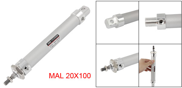 Product Name Air Cylinder Model MAL 20 x 100 Action Type Double Action Working Fluid Air Bore 20mm Stroke 100mm Max.Press 1.0Mpa (10.2Kgf/cm²) Screwed Rod Diameter 7mm Threaded Flat End Size 2.1 x 1.6 x 2cm/0.8" x 0.6" x 0.78"(L*W*H) Overall Size 23 x 3.5cm/9" x 1.4"(L*Max.W) Material Aluminum Alloy Color Silver Tone Net Weight 286g Package Content 1 x Mini Air Cylinder - Reviews