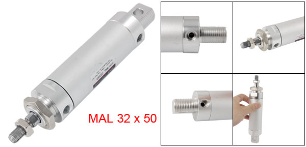 Product Name Air Cylinder Model MAL 32 x 50 Action Type Double Action Working Fluid Air Bore 32mm Stroke 50mm Max.Press 1.0Mpa (10.2Kgf/cm²) Screwed Rod Diameter 8mm Threaded Flat End Size 2.2 x 1.6 x 2.6cm/0.8" x 0.6" x 1"(L*W*H) Overall Size 19 x 3.5cm/7.4" x 1.3"(L*Max.W) Material Aluminum Alloy Color Silver Tone Net Weight 372g Package Content 1 x Mini Air Cylinder - Reviews