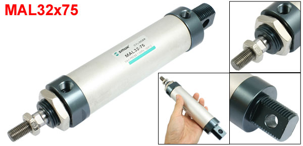 Product Name Air Cylinder Model MAL32x75 Rod Type Single Rod Action Type Double Acting Fluid Air Bore 32mm/1 1/4'' Stroke 75mm/2 61/64'' Port Diameter 8mm/0.31'' Screwed Rod Dia 10mm/0.39'' Threaded Flat End Dia. 24mm/0.94'' Max. Pressure 1MPa Total Size (Approx) 215 x 37mm/8.5' x 1.6'' (L*Max. D) Main Material Aluminum Alloy Color Gray, Weight 436g Package Content 1 x Air Cylinder - Reviews