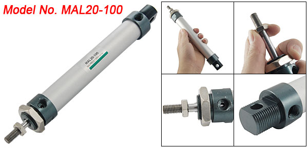 Product Name Air Cylinder Model No. MAL20-100 Action Double Acting Rod Type Single Rod Bore 20mm / 25/32" Stroke 100mm / 3 15/16" Rod Dia(Approx) 7.8mm / 4/13" Threaded Hole Dia(Approx) 8.5mm / 1/3" End Hole Dia(Approx) 7.8mm / 4/13" End Size(Approx) 22 x 16cm / 55/64" x 5/8"(W*H) Max Press 1.0Mpa Overall Size(Approx) 230 x 30 x 30mm / 9" x 1.2" x 1.2"(L*W*H) Material Aluminium Alloy Color See the Picture Weight 257g Package Content 1 x Air Cylinder - Reviews