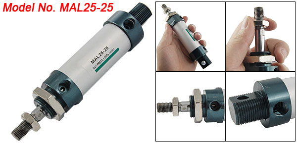 Product Name Air Cylinder Model No. MAL25-25 Action Double Acting Rod Type Single Rod Bore 25mm / 63/64" Stroke 25mm / 63/64" Rod Dia(Approx) 9.8mm / 5/13" Threaded Hole Dia(Approx) 8.5mm / 1/3" End Hole Dia(Approx) 8mm / 5/16" End Size(Approx) 22 x 16mm / 55/64" x 5/8"(W*H) Max Press 1.0Mpa Overall Size(Approx) 160 x 34mm / 6.3" x 1.3"(L*D) Material Aluminium Alloy Color See the Picture Weight 251g Package Content 1 x Air Cylinder - Reviews