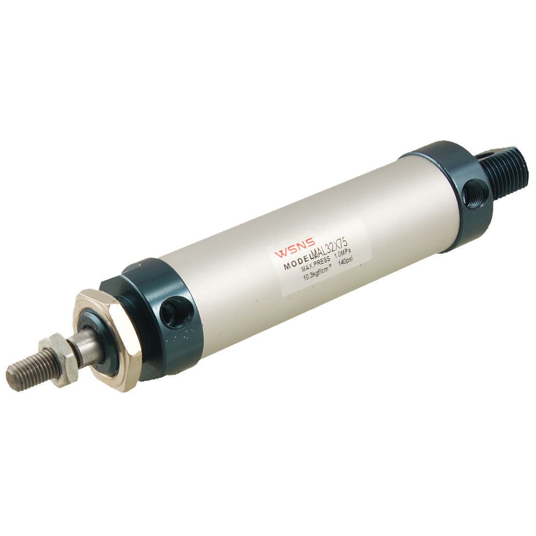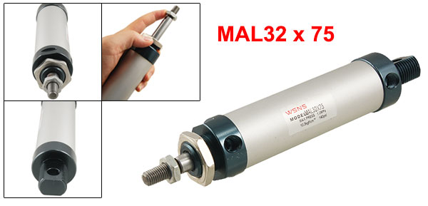 Product Name Pneumatic Cylinder Model MAL32 x 75 Action Type Double Acting Rod Type Single Rod Fluid Air Power Pneumatic Bore 32mm / 1.26" Stroke 75mm / 2.95" Max.Pressure 1.0MPa / 10.3Kg/cm² / 140PSI Rod Threa Diameter 9.7mm / 0.38" Air Hole Diameter 8.8mm / 0.35" Blue End Thread Diameter 23.7mm / 0.93" Blue End Hole Diameter 9.7mm / 0.38" Size 213 x 35mm/ 8.38" x 1.37" (L*D) Material Stainless Steel Color Silver Tone, Blue Net Weight 404g Package Content 1 x Pneumatic Cylinder - Reviews