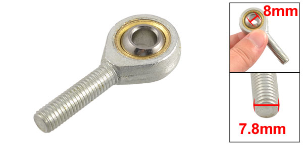 DetailsMale Connector Rotary Ball Printing Machinery Rod End Bearing SAL8 T/K  Product Name Rod End Bearing Type SAL8 T/K Connector Type Male Ball Hole Diameter 8mm/ 0.31" Male Thread Dia 7.8mm / 0.3" Total Size 56 x 24 x 12mm/ 2.2" x 0.96" x 0.47" (L*W*T) Material Metal Main Color Silver Tone Weight 43g Package 1 x Rod End Bearing