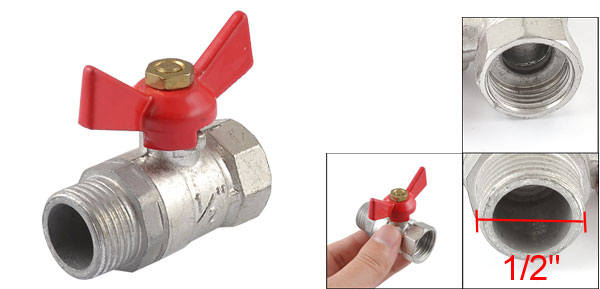 Product Name Tee Handle Ball Valve Thread Diameter Male=Female=21mm Thread Size 1/2"PT Handle Size 45 x 12mm / 1.8'' x 0.5'' (L*W) Body Size 48 x 25mm / 1.9'' x 1'' (L*W) Color Silver Tone, Red Material Metal Weight 70g Package 1 x Tee Handle Ball Valve - Reviews