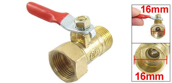 Product Name Ball Valve Thread Diameter Female=Male=16mm Thread Size 3/8"PT Body Size 36 x 22mm/1.4" x 0.9"(L*W) Level Handle Size 35 x 10mm/1.4'' x 0.4'' (L*W) Color Gold Tone, Red Material Brass Net Weight 42g Package 1 x Full Port Ball Valve - Reviews