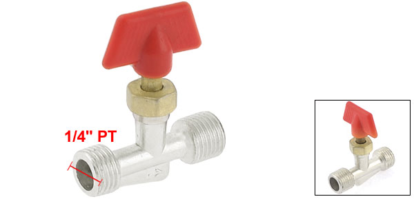 Male to Male 1/4" PT Threaded Brass Ball Valve Red Silver Tone
